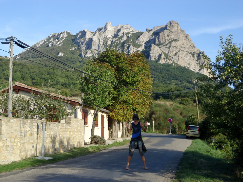 September 13, I bussed from Barcelona to Perpignan, and then a bus to Quillan, in Southern France, the bus ride was incredible through the Cathar region, my mouth was open a lot of it, because of the jaw dropping beauty, with villages and houses nestling in the rock. This is a spectacular region, with the river Aude runs through the town. And stayed one night with a young couple from couch-surfing, the house was on Jean Jaures, and then the next day moved to stay with Marie Batôt, in the village of Espéraza. One of the hosts dropped me off as it wasn’t far away.