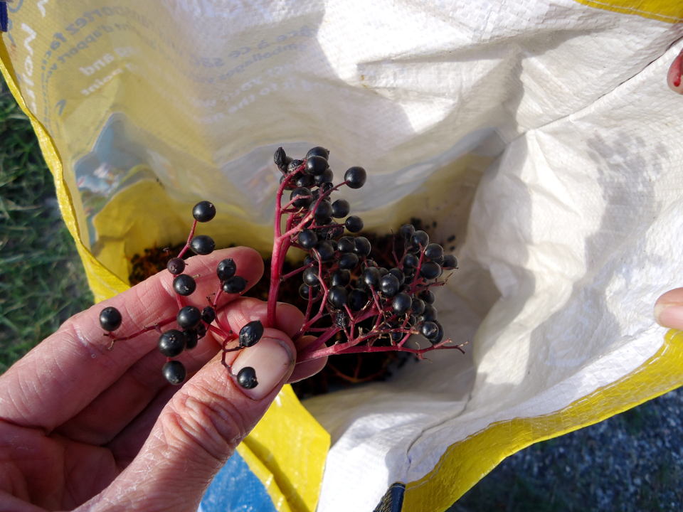 Collecting wild elderberries, a keen forager.