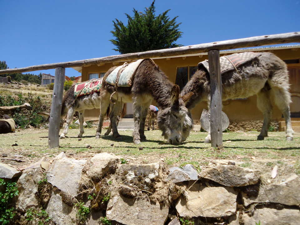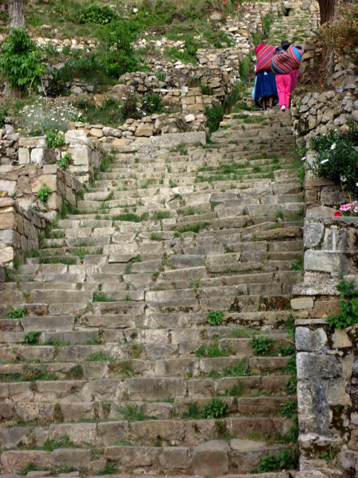 On the way back down to our hostels that day, we took the donkey route by accident. It was amazing to witness. However, we must have been annoying for the locals. We tried to keep out of the way. Standing well back for the local people coming up bringing up supplies on the donkeys. The donkeys seemed to be very good and obedient, plodding on following the steep path up from the boats. The town is up on the hill. The views upon the walk to the ruins, are fantastic, up over Lago Titicaca. We also went to Escalinata, which you go by, evidently pre Hispanaic stairs of Yumani.