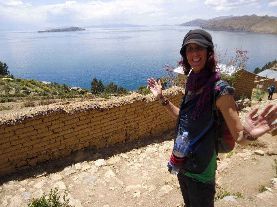 Monika and I had some lunch and then took a boat back to Copacabana. Picking up my bag at Los Andes Hotel, we decided to share a large apartment room there. It felt like a penthouse, with amazing views out of the lake. We felt happy and blessed, organising things, and I exclaimed at my extreme sunburn. We stepped out for dinner. We saw my friend, the Peruvian Jeweller. He led us into the restaurant where he works. A live band started up before us, they were great. It was funny. An opportunist older man took a shine to me. He called me his girlfriend and got me up dancing. Our dinner was lively that evening.