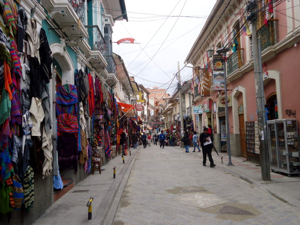 I was washing hands in the bathroom. I asked a local Bolivian lass if she was catching a bus into town. She had a lot of luggage. Turns out she was, and I went with her to catch a Collectivo, a local bus. With my bag stored with others on top, I was a bit nervous about this. Traffic was intense, but we made it. She was nice to me. I got off at the San Francisco church. It was literally only 4 Boliviano ($1NZ) for this service. I got off here and went to where Monika was staying and booked in there. And found her and let her know what had happened.