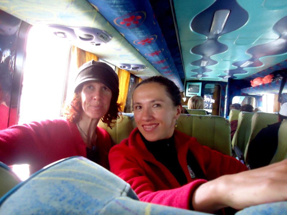 And we both enjoyed the fantastic Jewelers shop which was jammed packed full of lovely handmade jewellery. The next morning, after breakfast at the hostel, I bought an Alpaca top. Then we were on a local bus towards La Paz. There were lots of tourists on the bus too.