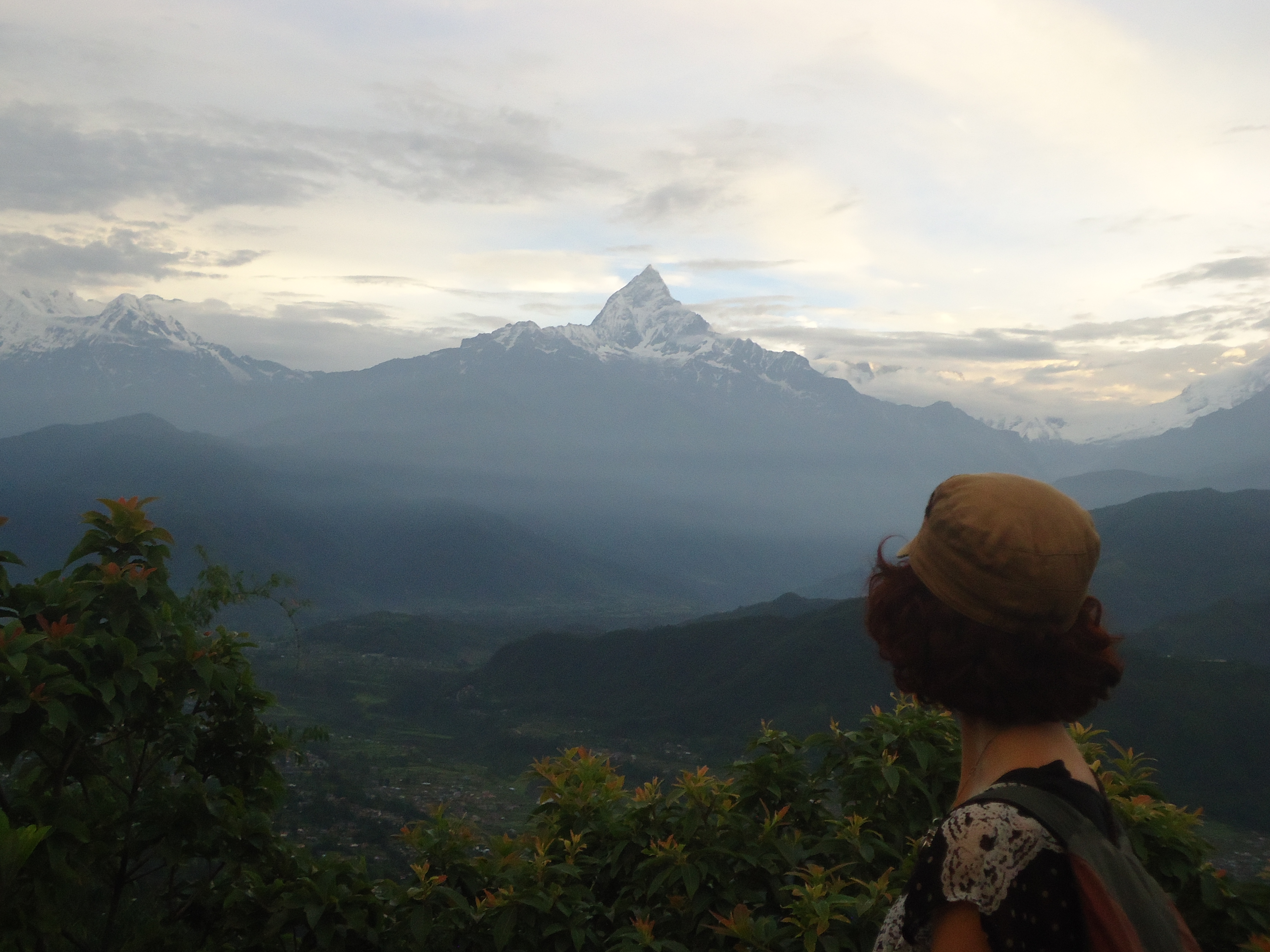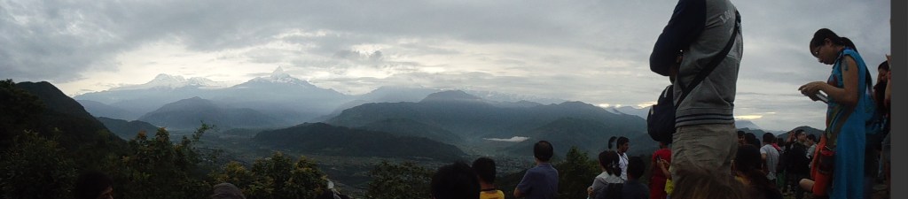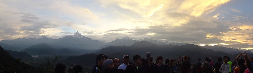 28 June, I wake early and I was off out the door at 4.30 am, and I waited for Narayyan until 4.40, then as I couldn’t see him, I went down the road and found another driver. It was a clear day, like he said it would be. And I got to see the Anna Purna, Machhapuchhare (the perfect pyramid) to Anna Purna 2. Lots of people were up there. The driver waited for me, and I met a woman from America. I really was incredible to see that mountain range. I took photos. Basked and stood in front in awe of it like all the other tourists.