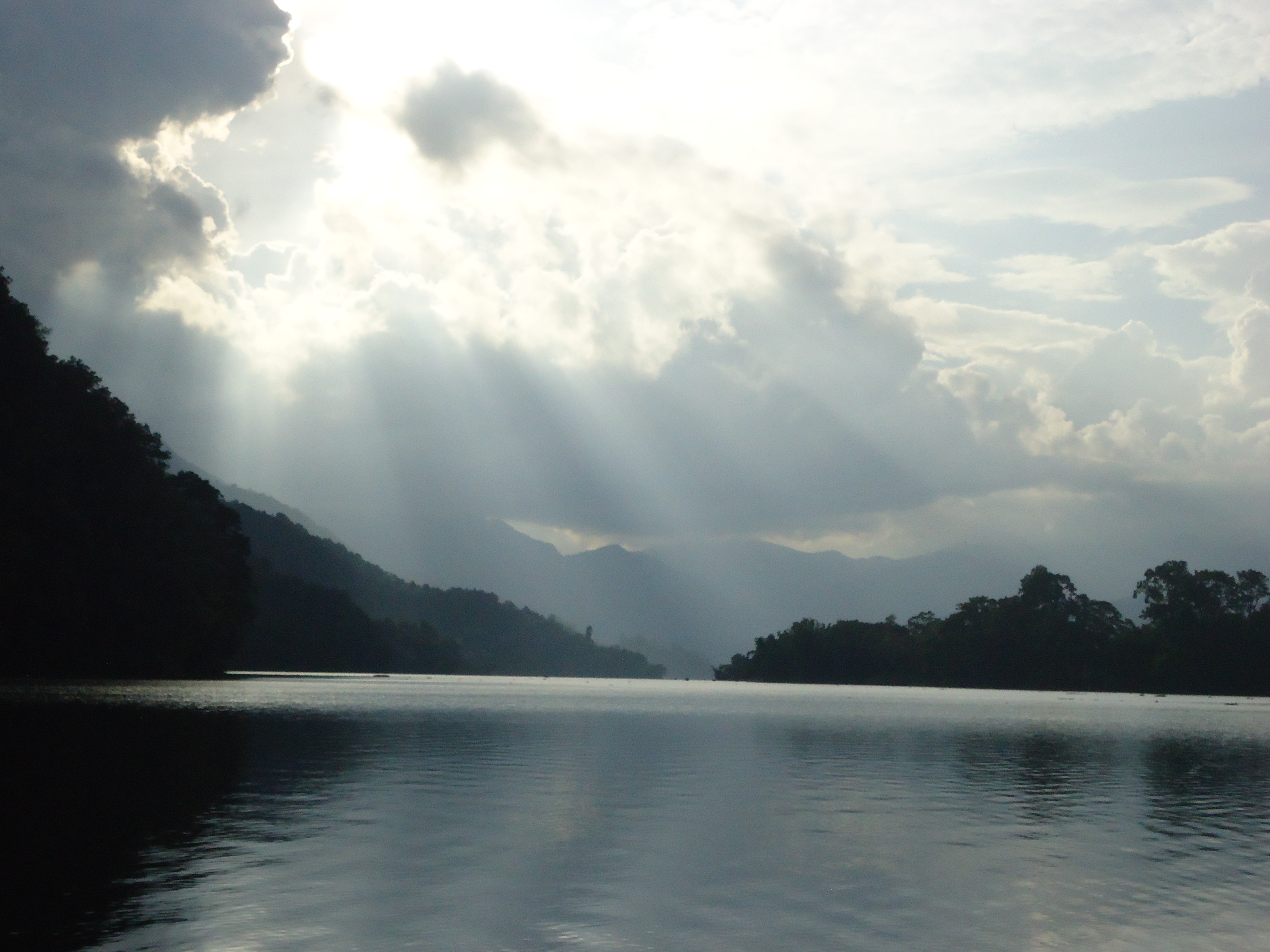 27 June, I was very tired and slept later than I had in a long time. I went for a walk, sat by the lake. A Nepalese man sold me some postcards and random things. I had Papaya and shared some, he suggested marriage. That afternoon, I felt to be near nature and peace without anyone trying to sell me something. I walked in the heat into the trees and up the hill. It was a very hot day. I found an umbrella to buy because people use them for shade as well as rain in summer. It was the monsoon season. I found a peaceful spot up there and a view over the lake.