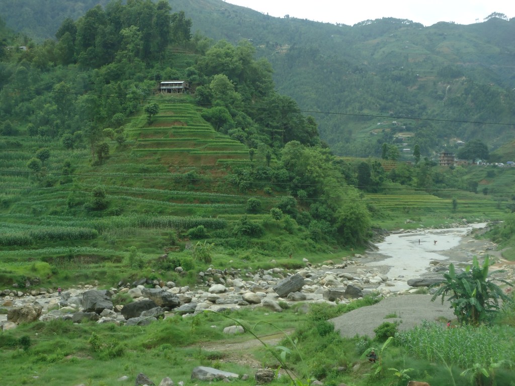 26 June, Waking early, I was ready to be picked up at about 6.45 am, as the Greenline bus was leaving at 8 am. I met Toi from Bangkok, and we ad lunch together at the free lunch stop. It was a beautiful stop near a river, it was nice to get closer to greenery again, with less dust. With people living in the lush hillside greenery, it seemed healthier than the dust, pollution, bricks and cement of Kathmandu. The buses in Nepal seem geared up for the bumpy roads and the road was bumpy all the way. We saw three buses on the roadside that looked like had been in accidents. It took about 6 to 7 hours.