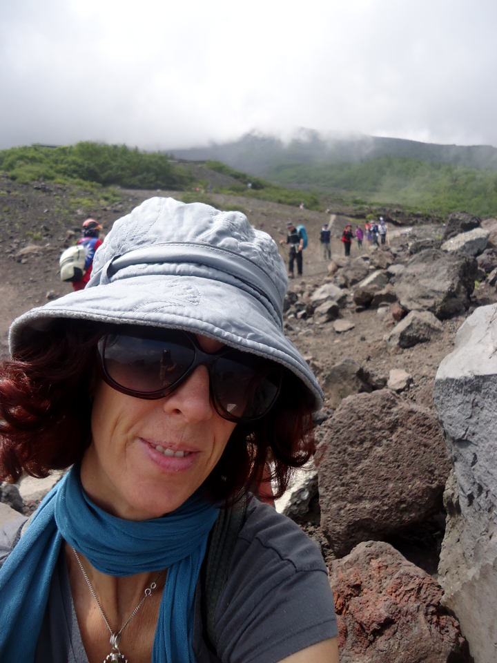 31 July – Today was the day I intended to go to 5th station Mt Fuji. The Malaysian women from my room and I jumped onto the 6.40 am bus up. The buses left from station next to the Hostel. We got there all good. I thought there would be a long queue, but there wasn’t. Up we went! All trees pretty much all the way. It was a very clear morning, we were lucky, as this doesn’t always happen! We went our different ways when we got to the 5th Station. As she was a pilgrim and going to climb the mountain. I decided to walk up some and ended up walking to the 6th station.