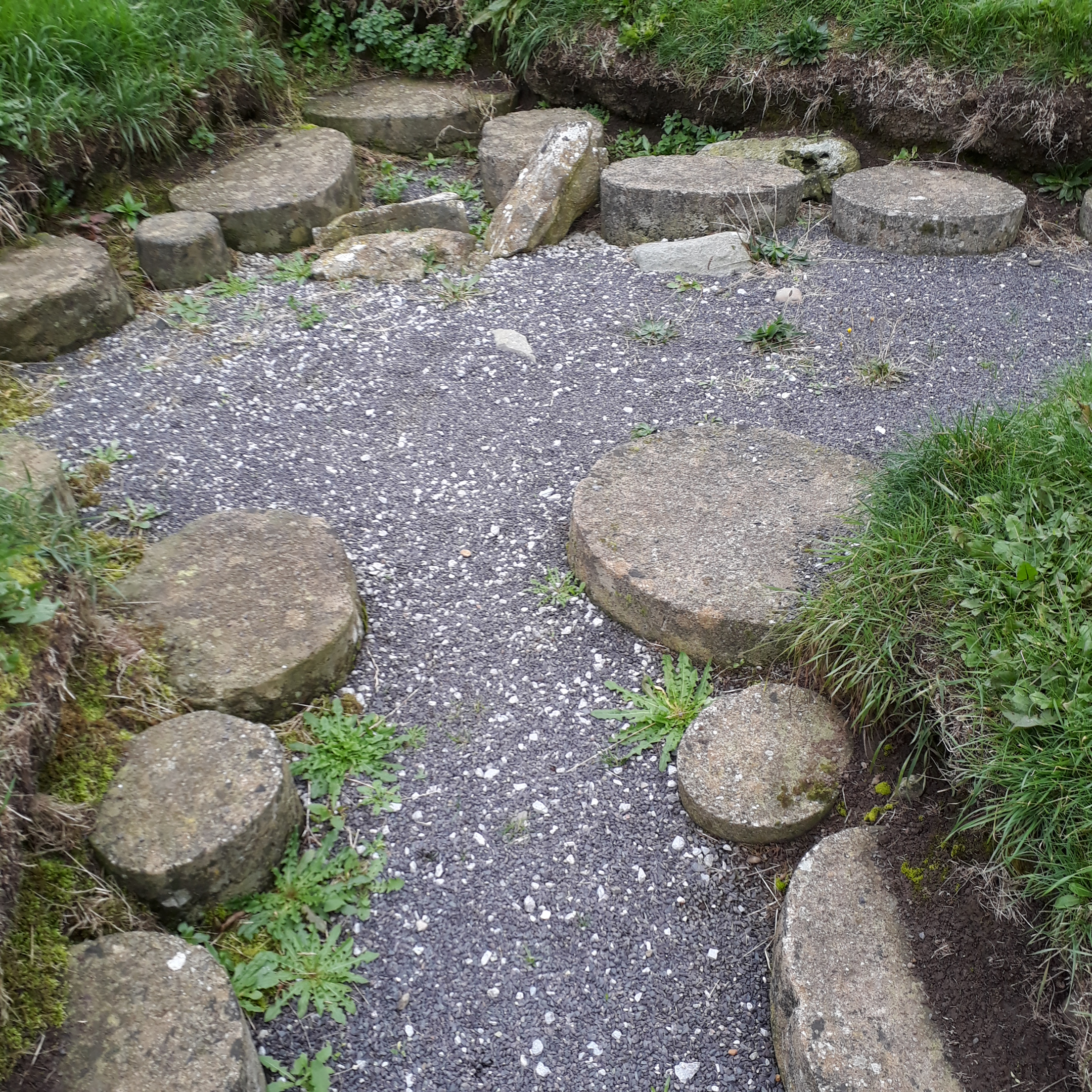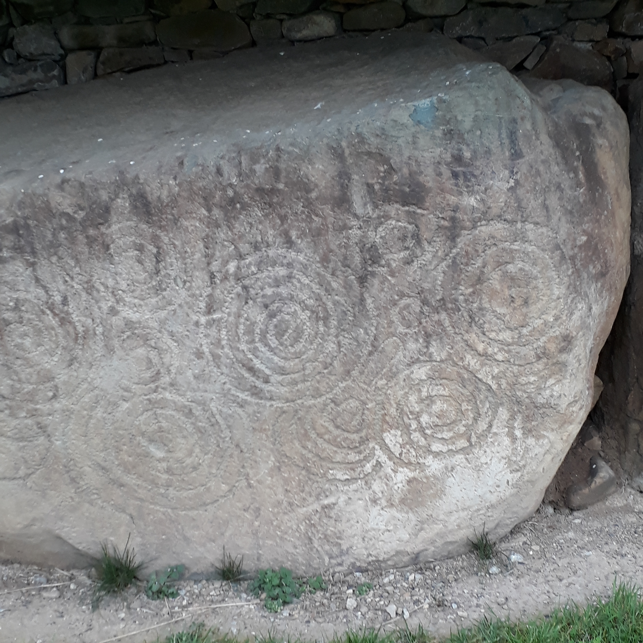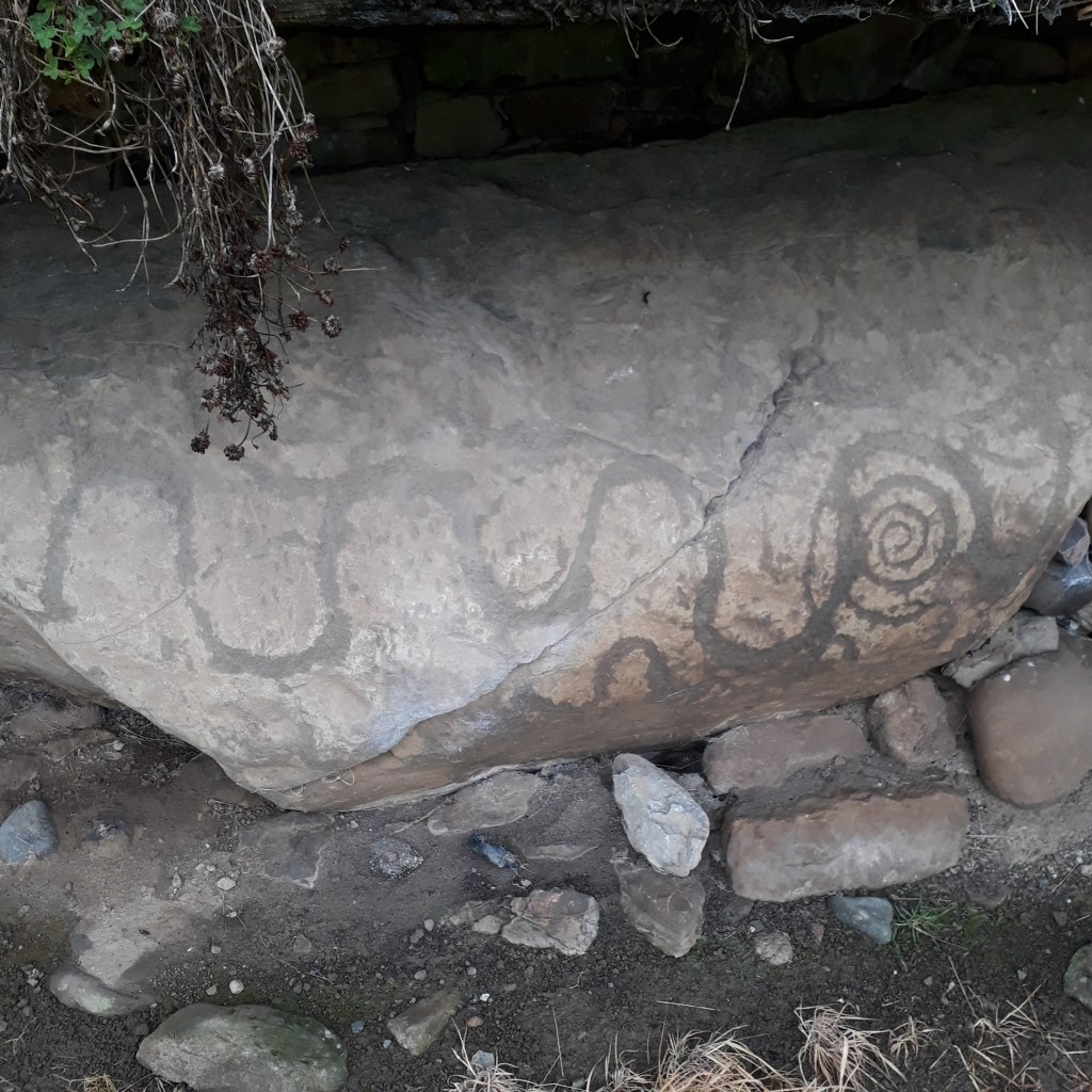 The mounds of Knowth, felt a bit like I was in tele tubbie land. The Great Mound at Knowth was built over 5,000 years ago, probably after the time of Newgrange. The Great Mound is similar in sizing to Newgrange and is surrounded by 18 smaller mounds. With two passageways, entered on opposite sides.