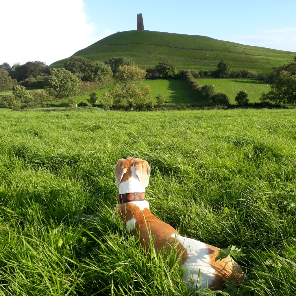 I was walking Damson one day near the base of the Tor. A woman stopped me to ask for directions to the Egg Stone. So, it was hard to direct her, was easier to take her. So Damson and I were her escorts. She was so happy, she gave me a really lovely Amber necklace.