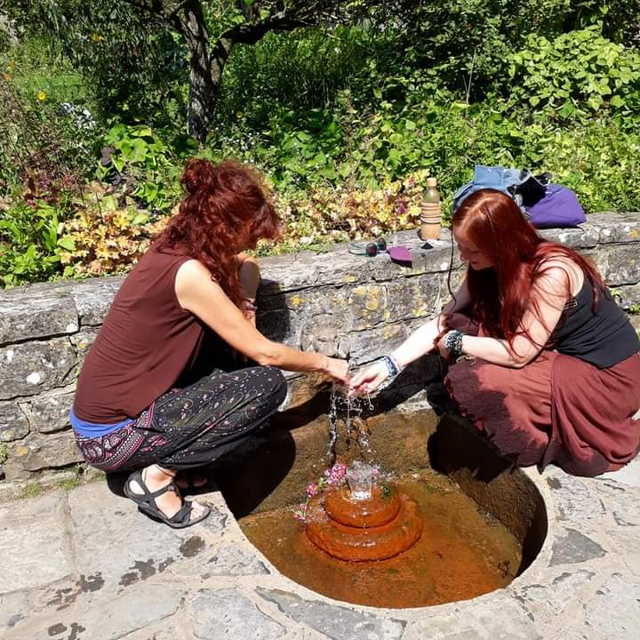 I bumped into Tara Joy while she was playing music up the Tor. I came down with her. She sat down to play outside the White Springs before it opened. There is a guided meditation every year for the Summer Solstice at the Chalice Well Gardens. It is one of my favourite places in the world. I was there, as was Hannamari. It was a 33 degree day, and there was a heat wave. We had some fun with the sprinklers at Chalice Well as we were so hot. We meditated by the well head. Then we went to the White Springs. We both went for a cleansing dip in there. As it seemed fitting, and it was both of us out our comfort zones.
