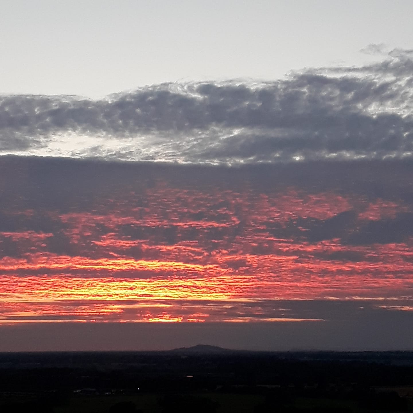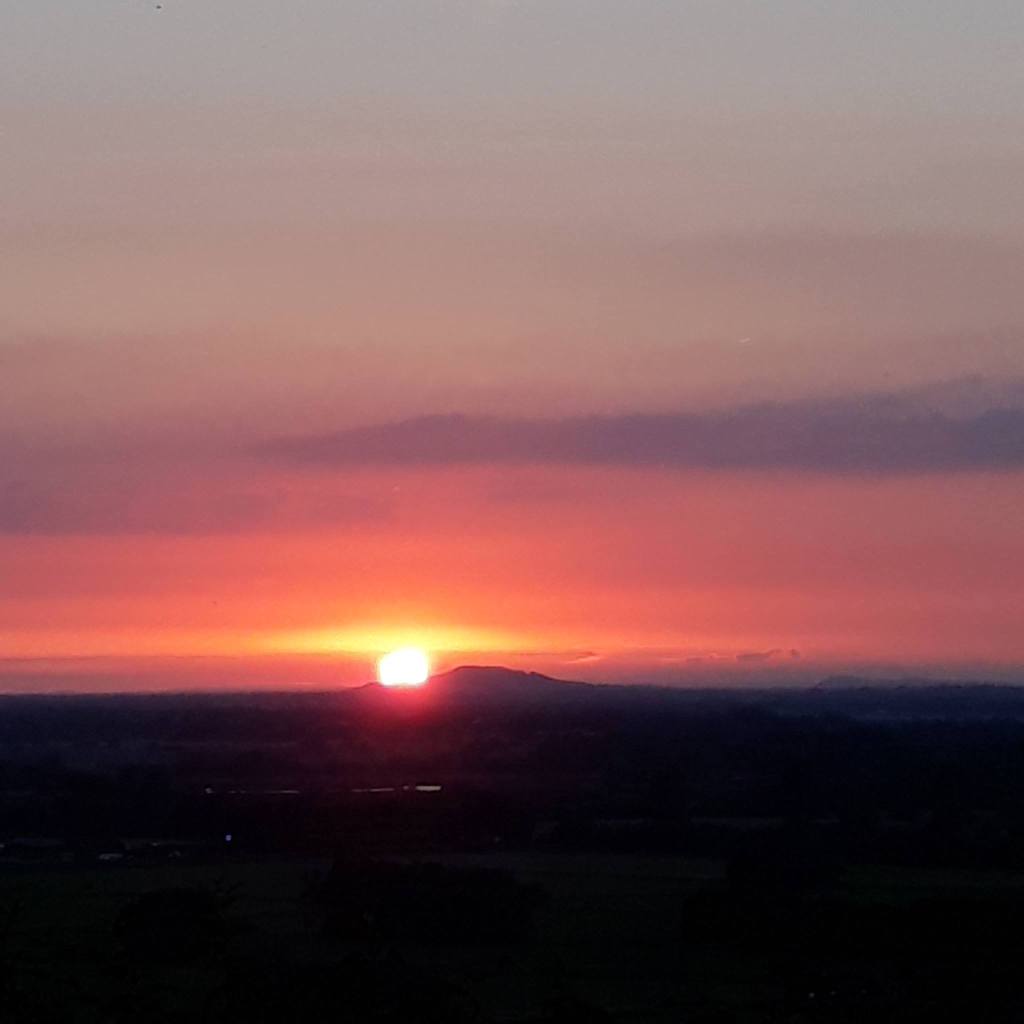 July, Anneke and I would go up Wearyal Hill and see the sunsets too. Looking out over the horizon the sun would set over Brent Knoll in the distance.