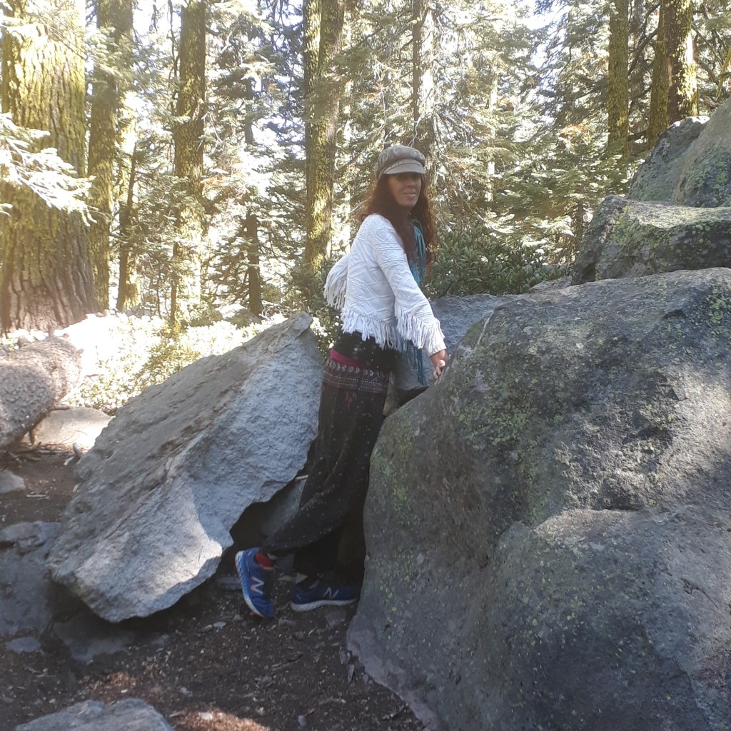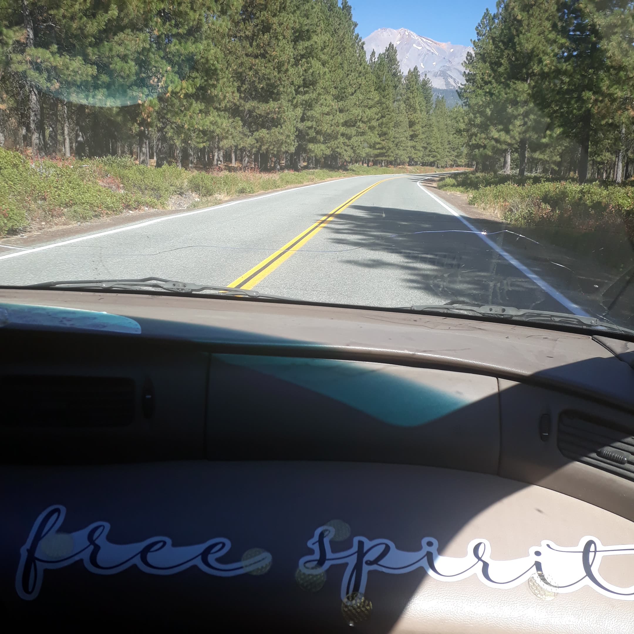 We packed up to go for an adventure up Mt Shasta. Stopping in at the town on the way. We also stopped at this site of ancient rocks, called Ascension Rock. It is worth experiencing this giant rock outcrop, like a cliff but not quite. You can climb up Ascension Rock, and it is a place many come to ceremony or meditation. There was a group doing ceremony there when we arrived. There was a lot of energy here, and Light Language coming through.
