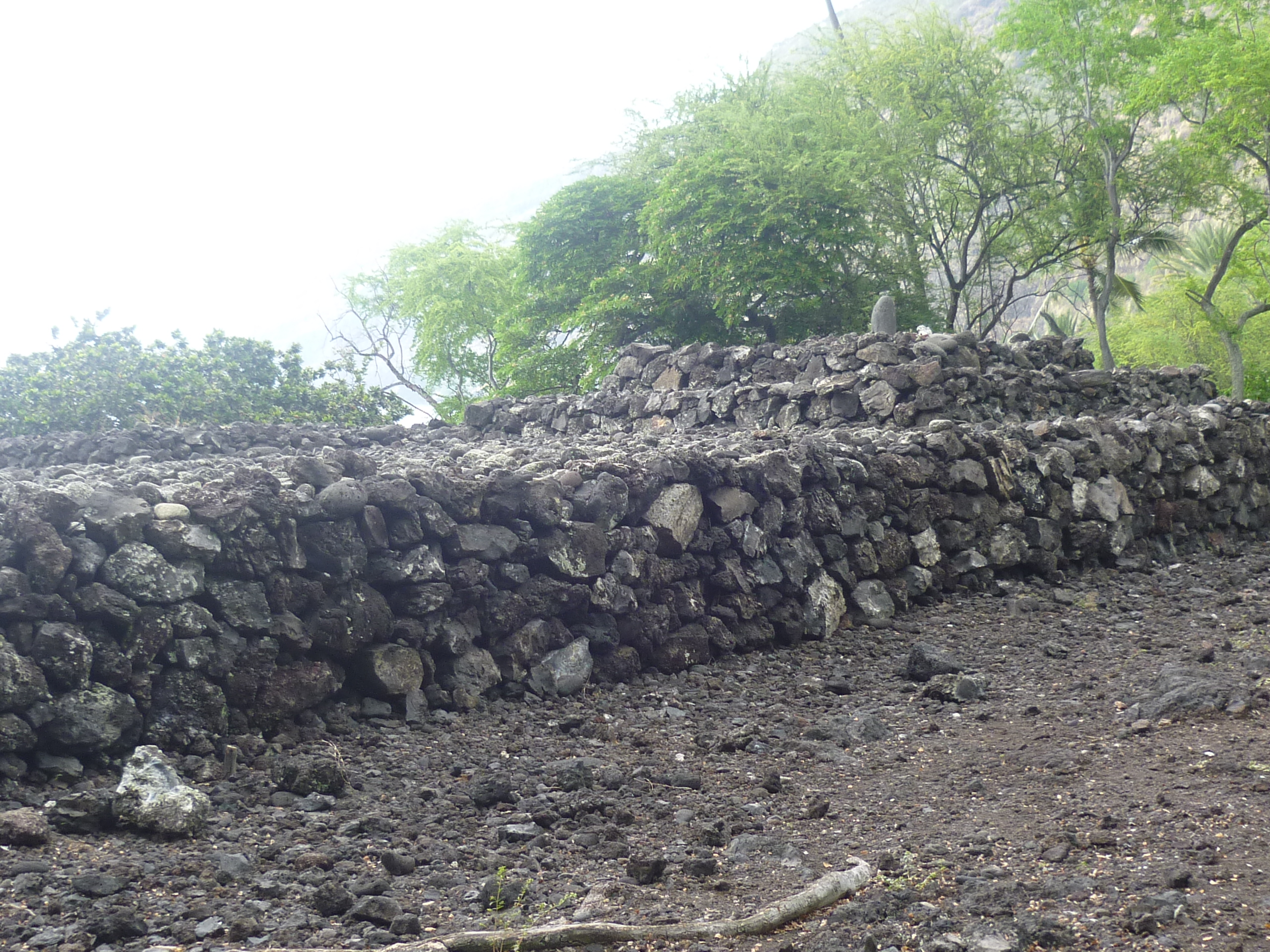 Hawaiian heiau, or temple sites. These were places of great spiritual power and were treated with reverence. We went to a few heiau up the valley enroute to the falls. We visited Lydgate Beach Park, exploring and spent time near the heiau there. It is located by the mouth of the Wailua River, ancient rocks there being looked after. We did some toning and sounding together near one.