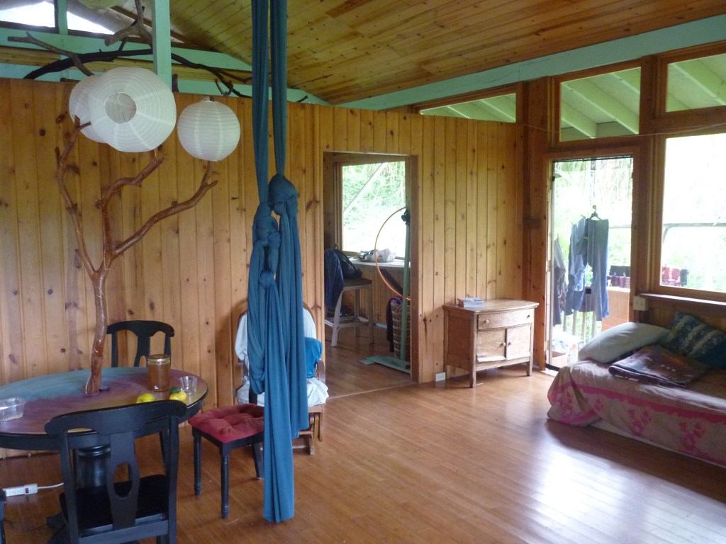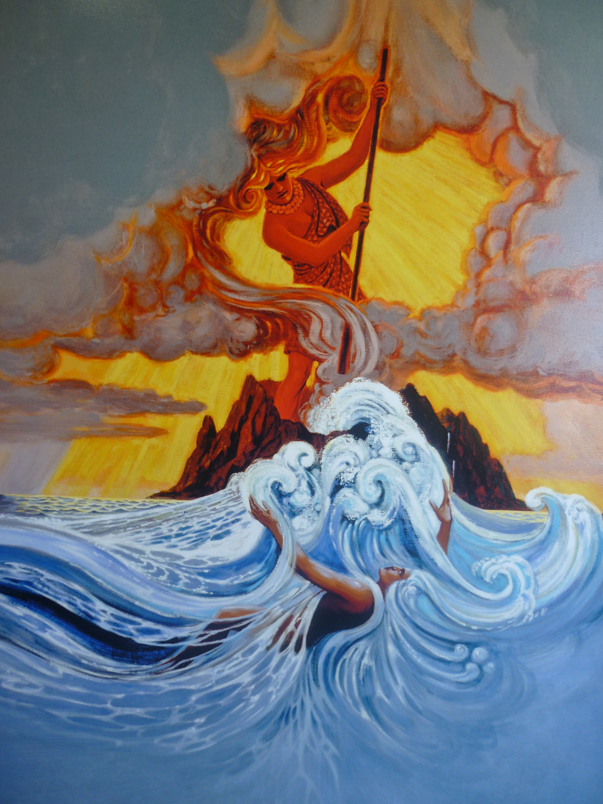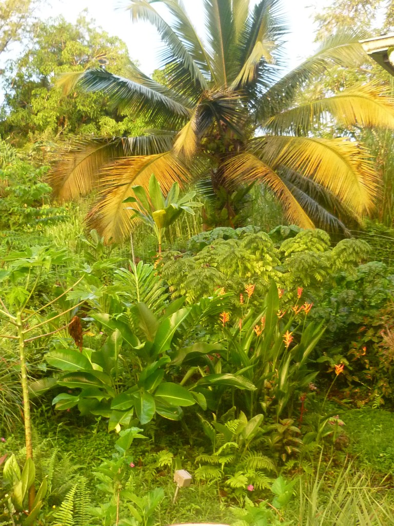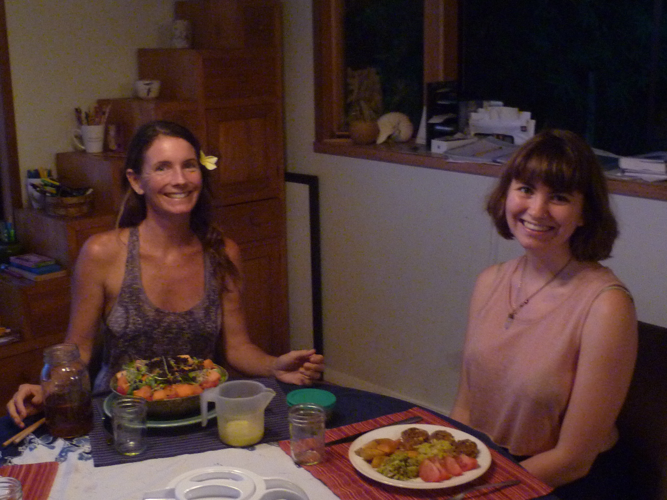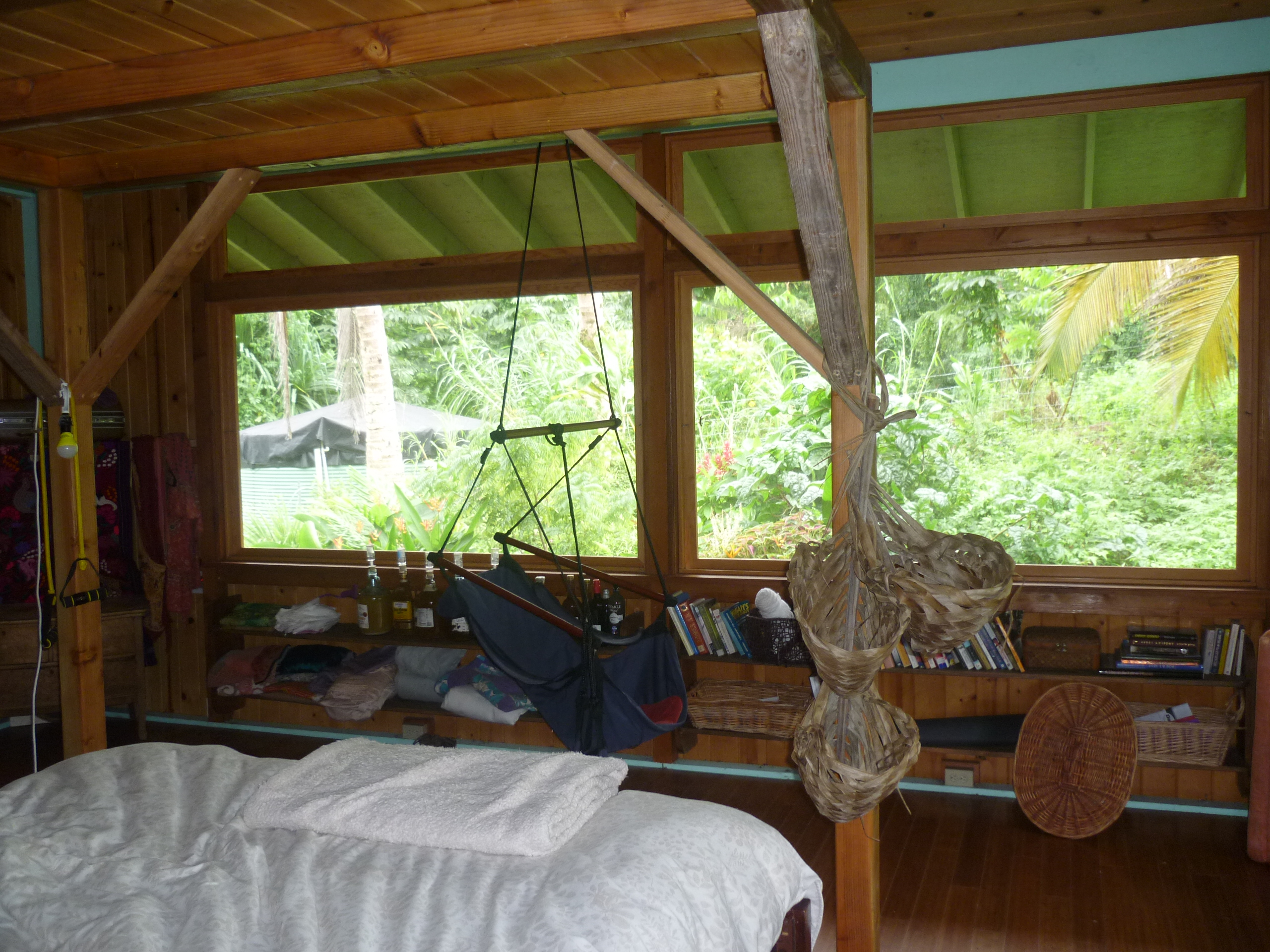 Jodie came back and we went for a swim at Anini, and then we went to her place at Moloa’a. It was an awesome place, architecturally built in a Balinese style. And the sleep out was fantastic. The beach was lovely and within walking distance. We had some delicious swims there. The stream came down the mountains and met the ocean. The weather when I was on the island was amazing, except for maybe one half rainy day. I gave Jodie a healing session, and healing massage to say thankyou. I was very appreciative of being able to stay there. On the land, there were avocado trees, papaya trees, and mango trees. They were laden with fruit, and there were banana trees as well. Amazing.