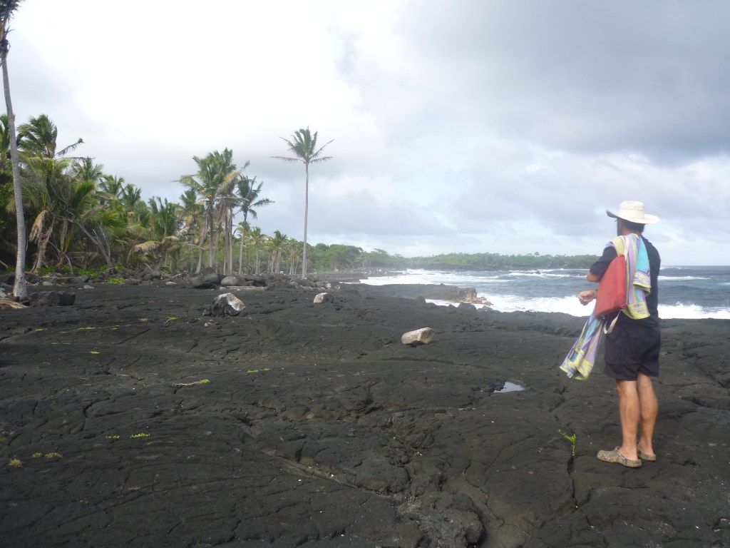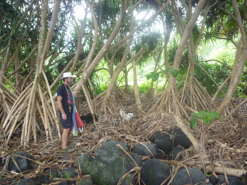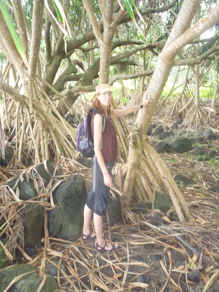 The next day, I brought Jodie along to meet John Pia, and visit the sacred land there in Anahola. Laura and her friend were staying on the land (they had both been to the group). John came to meet us, and showed Jodie the lookout.